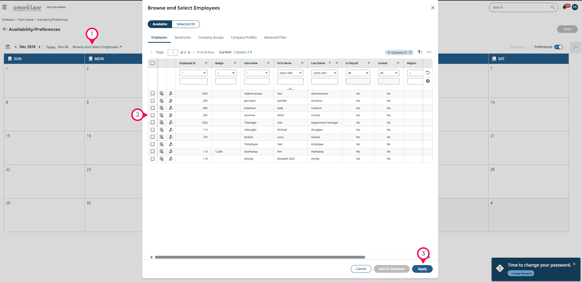 Step 2: Select the Employee(s) for Updating Availability/Preferences