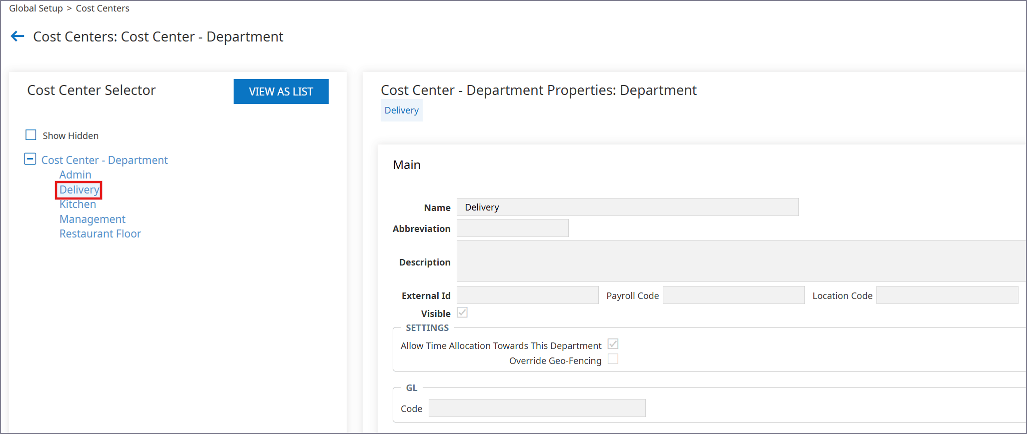 Cost Centers are the flexible hierarchical representation of your organization. These typically include but are not limited to departments and locations. Cost Centers provide the framework needed to schedule, track, manage, and report on time worked.