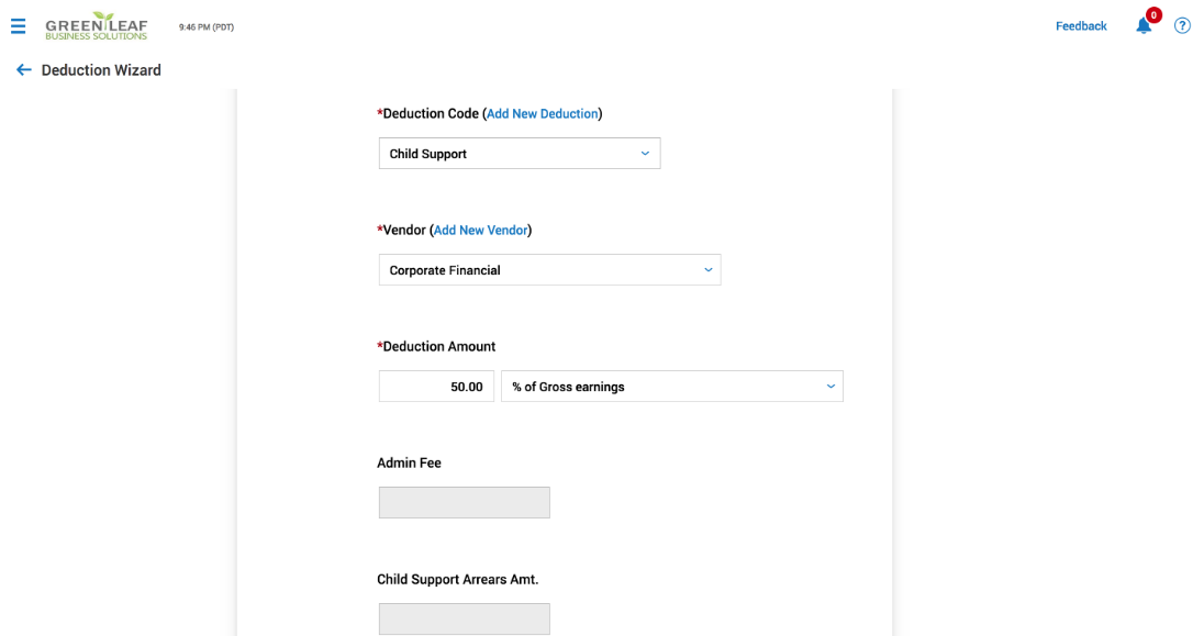 Choose the Vendor (if none are available or none that fit the deduction, please reach out to your payroll specialist)