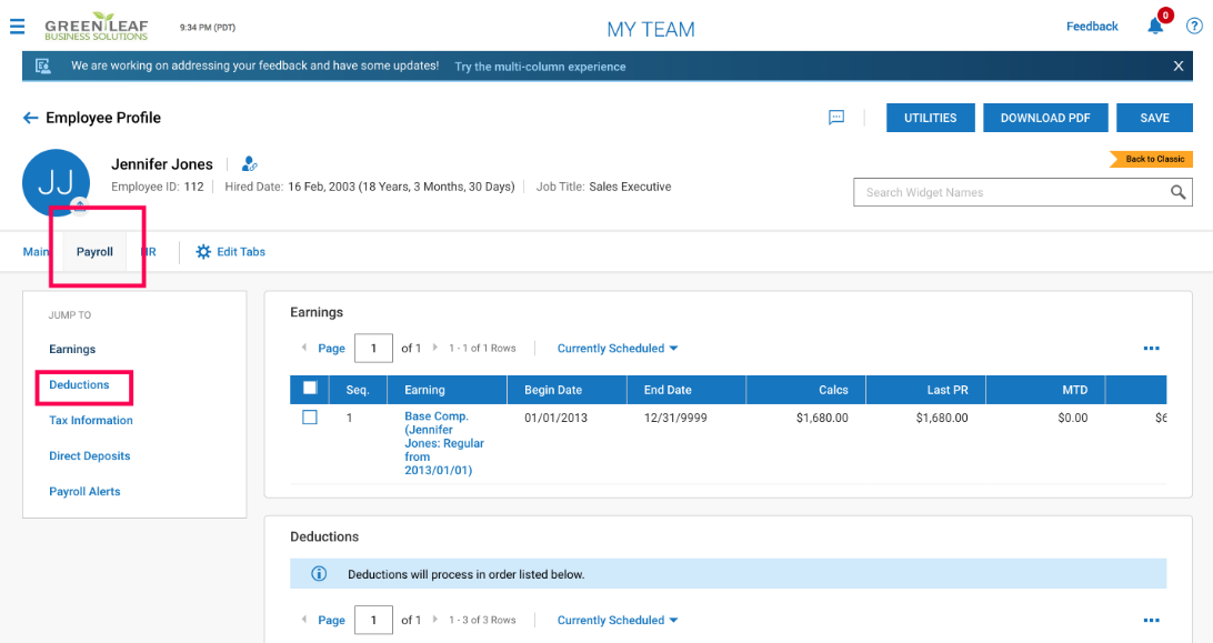 After the codes have properly been set up, you may now set up Deductions on employee records.