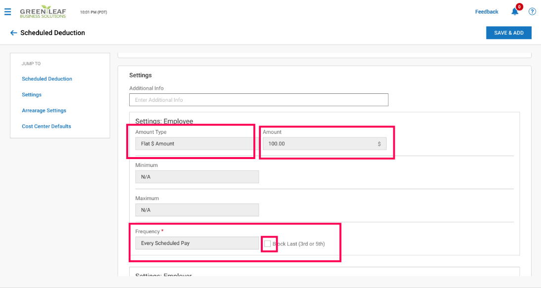 Choose if the Deduction will be a Flat Amount or % of Earnings.