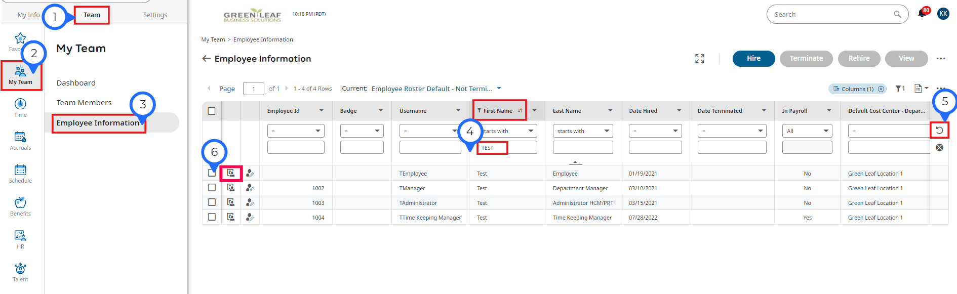Navigate to: Main Menu > Team Tab > My Team > Employee Information