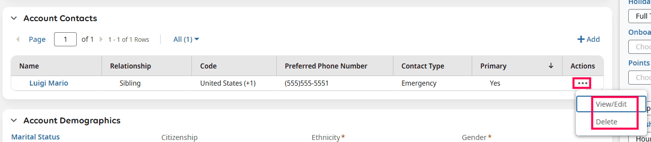 - Once there, select the +Add button to add a new contact for the employee.