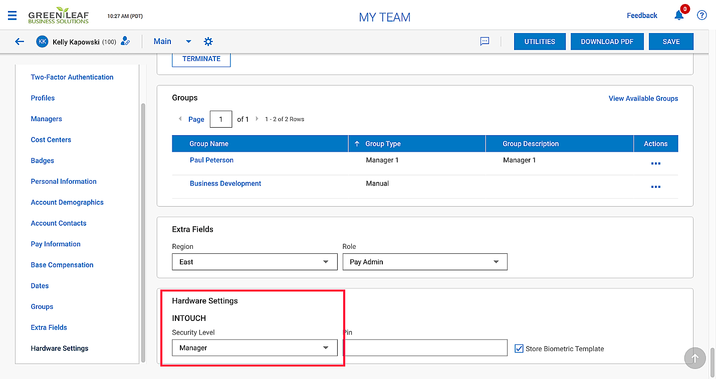 To tell the system if a user is a manager to gain access to the manager settings on the physical clock, you must set them up in the web portal.