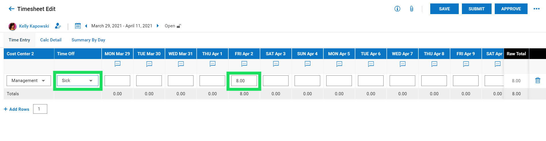 Approving will be the final step to prep for payroll. If your organization only has 1 approver, you can skip submitting and only approve.