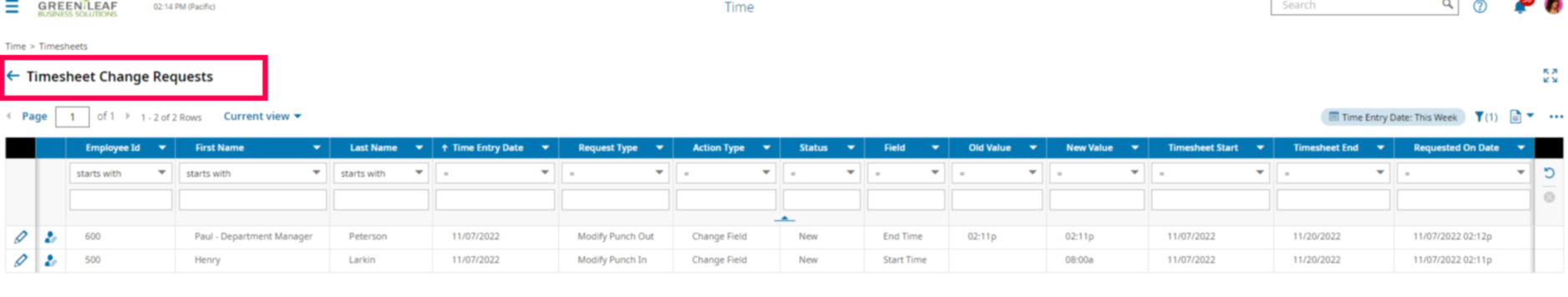 After you have configured the view/filter to display the current pay period (or the previous depending on the time frame you're looking to update), then start working on the timesheets.