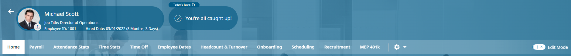Reports Dashboard: This dashboard will allow you to click through the topics and see live reports and data at a glance. Once in any graph, you can click the blue hyperlink of the report name to drill into the data making up the graph or report. If you do not see any reports or dashboards, please reach out to your payroll specialist or HRC for assistance.