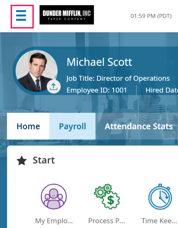 When logging into the site, on this video, we are the "Company Administrator" meaning that we have FULL access to functionality within the company. We also have levels of managers below that may only have access to timekeeping or HR functions. Depending on your level of access, your view may be slightly different.