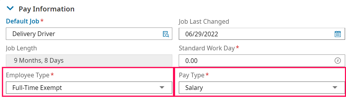 Step 5: Update the Employee Type and Pay Type fields for the employee.
